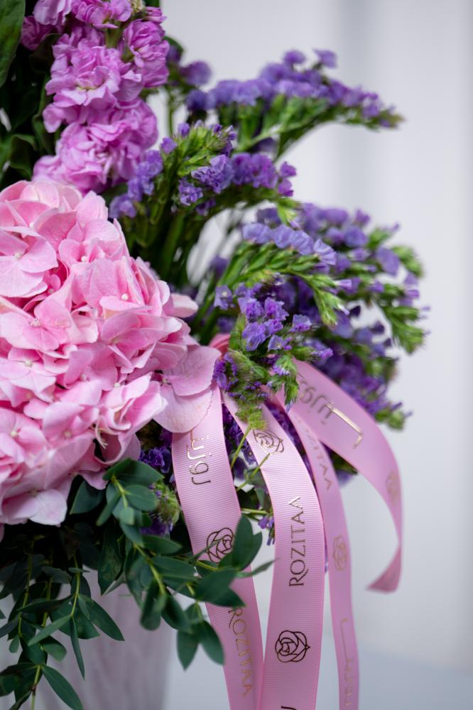تمتزج درجات اللون الوردي الرقيق مع الموف الهادئ والأخضر النقي في تناغم بصري مذهل، لتقدم لك أجمل باقة ورد طبيعي يمكن أن تزين مساحتك أو تكون هدية لا تُنسى.