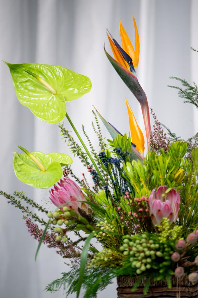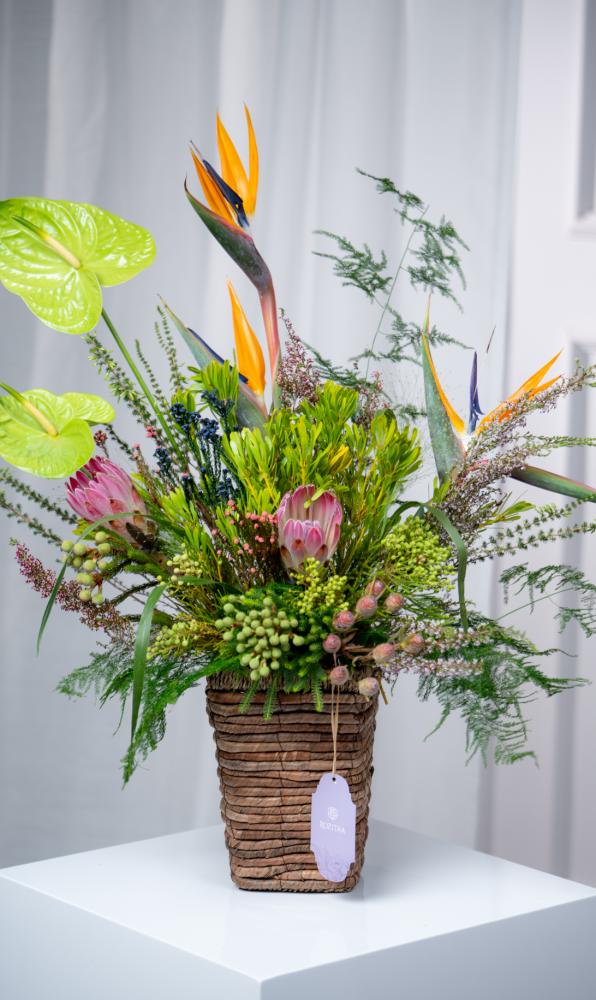 Every flower, every branch, is carefully placed to contribute to this vivid painting, making the “ Colors of Paradise ” basket a complete masterpiece worthy of contemplation.