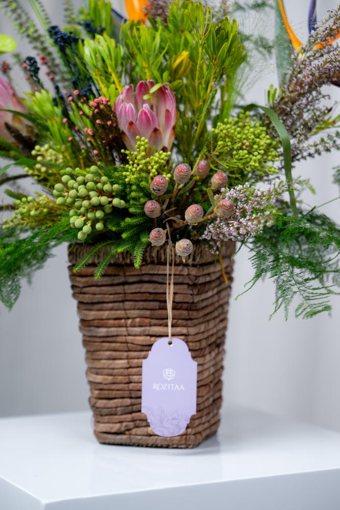 - Delicate pink hues of protea add a touch of delicacy and beauty.