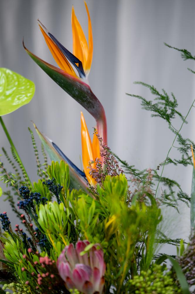 - Orange Australisia (Bird of Paradise) flowers : the embodiment of joy, cheerfulness and optimism, and a sign of distinction and magnificence.
