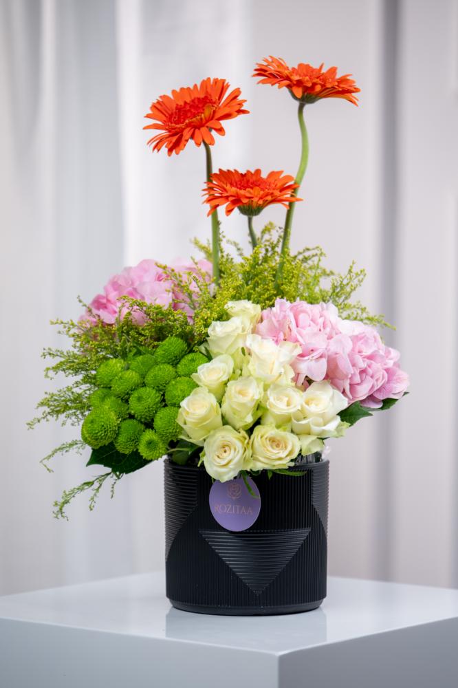 In a world filled with speed and souls yearning for beauty, the "Rhythm of Roses" vase stands out as a captivating masterpiece, transcending the boundaries of traditional arrangements to touch the heart. A visual invitation to a unique experience, where modern design meets the fragrance of nature, creating a symphony of colors and emotions that captivate the senses and inspire the soul.