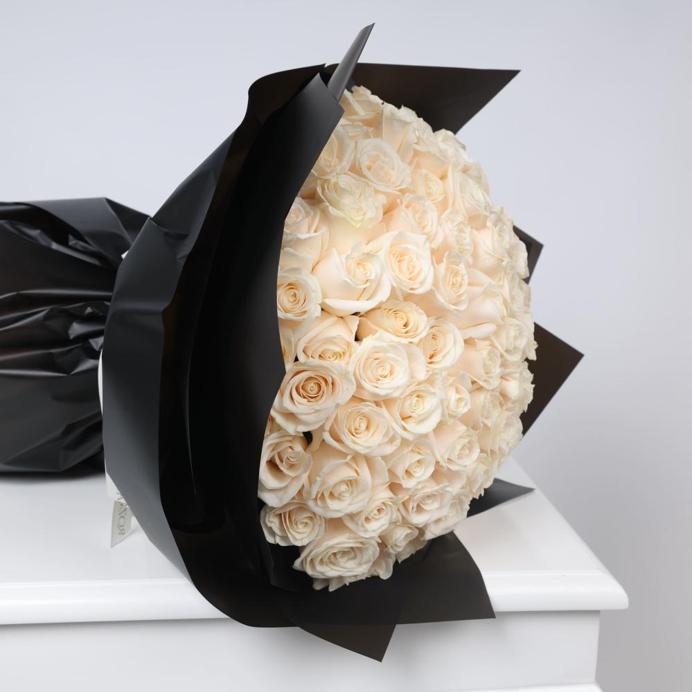 A bouquet of white roses, a delicate gift suitable for all occasions, blessings, and congratulations, a gift for women and men, a high-quality gift coordinated by the Rosetta Gifts and Flowers team.